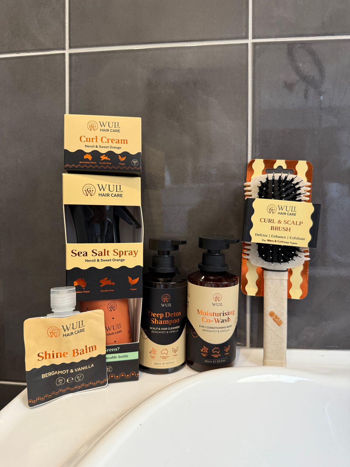 Moisturising Co-Wash – Aqua, Glycerin, Cocamidopropyl Betaine, Sodium Lauroyl Sarcosinate, Caprylyl/Capryl Glucoside, Cyamopsis Tetragonoloba (Guar) Gum, Coco Glucoside, Triolein (AlgaPūr™), Fructooligosaccharides & Beta Vulgaris (Beet) Root Extract (MultiMoist CLR), Argania Spinosa (Argan) Kernel Oil, Simmondsia Chinensis (Jojoba) Seed Oil, Helianthus Annuus (Sunflower) Seed Oil, Polyquaternium-7, Cetrimonium Chloride, Tocopherol (Vitamin E), Citrus Aurantium Bergamia (Bergamot) Fruit Oil, Natural (Vanilla) Fragrance, Guar Hydroxypropyltrimonium Chloride, Sodium Phytate (PhytaShield), Citric Acid, Benzyl Alcohol, Salicylic Acid, Sorbic Acid.